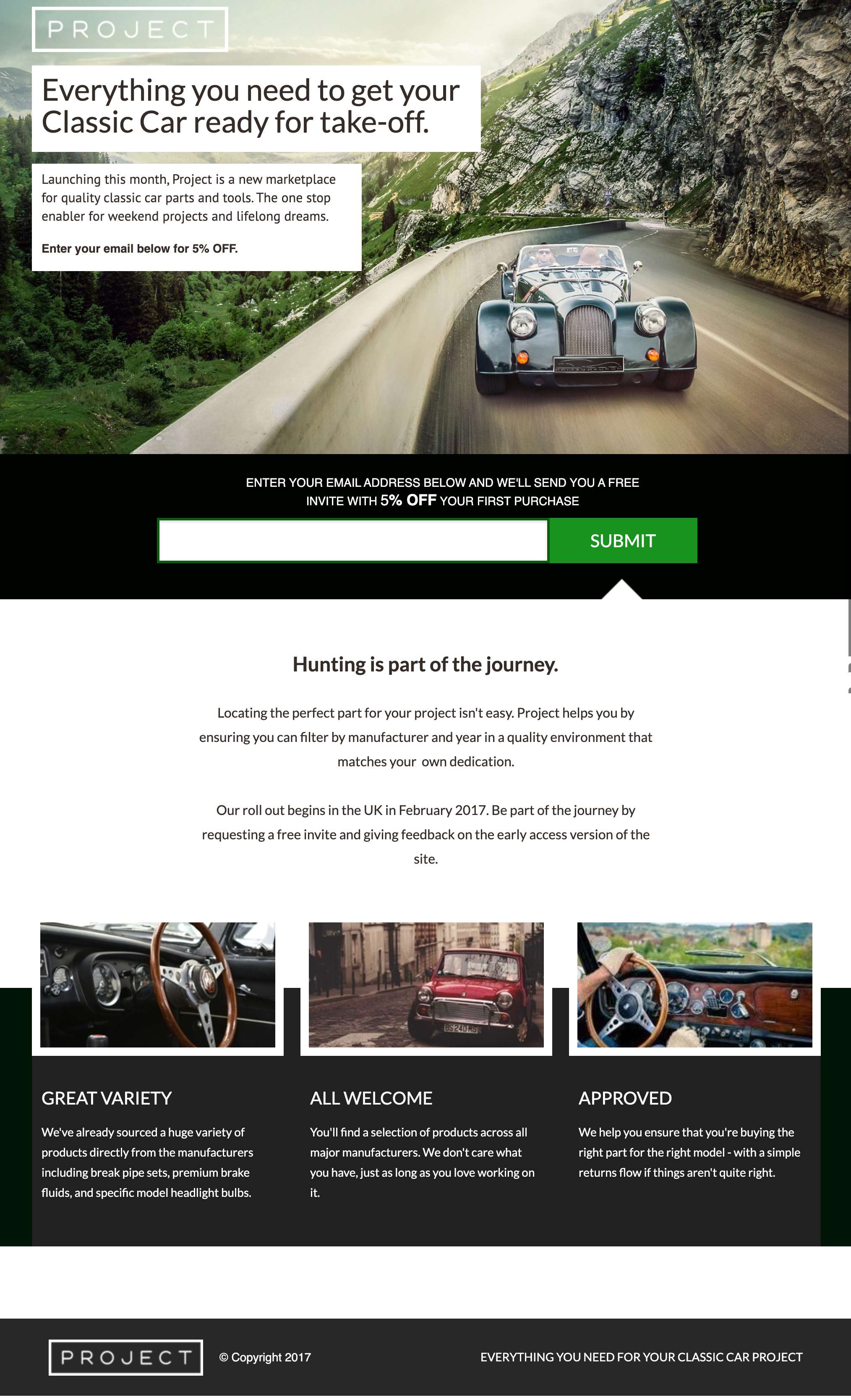 In its simplest form a landing page is a static web page containing your key headlines and differentiators. If a member of your target segment lands on the page, they should read the information and feel compelled to leave their email address.